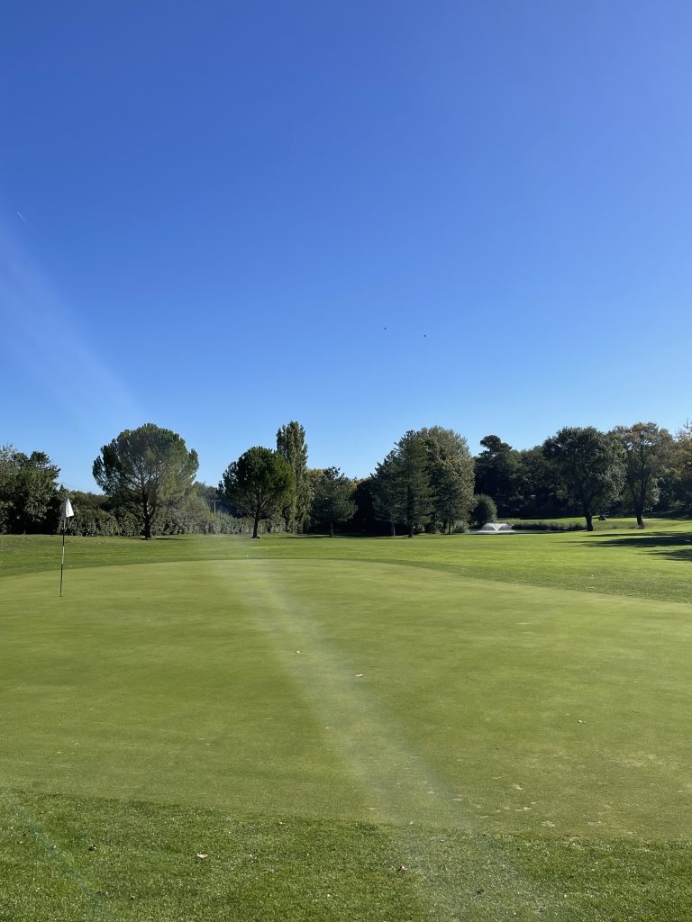 Une qualité de greens exceptionnelle : grâce aux nombreuses interventions techniques déjà réalisées en 2025 – décompaction, sablage, tontes raisonnées, travail mécanique précis – les greens affichent actuellement un état sanitaire optimal. Leur densité, leur élasticité et la vigueur de leur système racinaire permettent de garantir une surface de jeu d’excellence sans intervention supplémentaire.